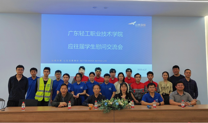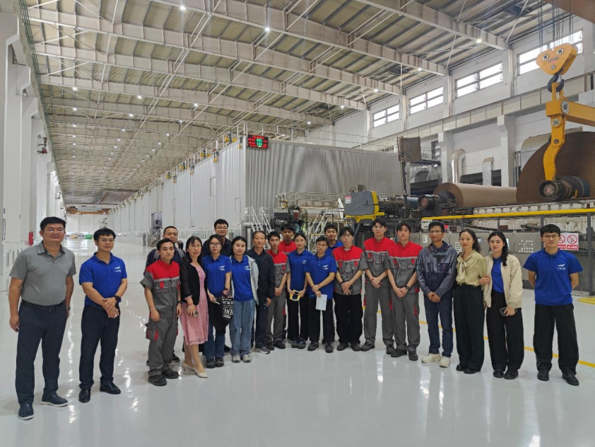 学院领导和教师参观了山鹰纸业造纸车间先进的生产线和智能化存储仓库,并与2023届制浆造纸技术专业的14名顶岗实习同学进行座谈,鼓励同学们投身现代化造纸行业,积极学习先进的生产工艺技术,并就学生工作、生活等方面进行交流。同学们精神饱满,积极活跃,受到企业领导的赞许。