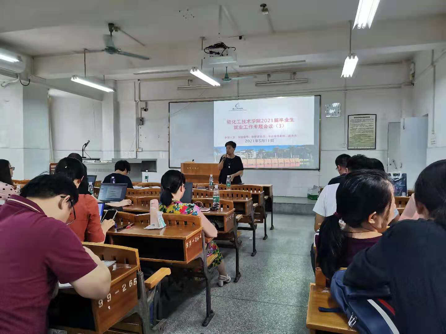 5月11日下午,轻化工技术学院在广州校区302室召开2021届毕业生第三次就业工作专题会议,院长李荣、党总支书记谢彩英,学院毕业生就业工作领导小组成员,相关教研室专任教师等60余人参加了会议。会议由学院党总支副书记吴忠坤主持。