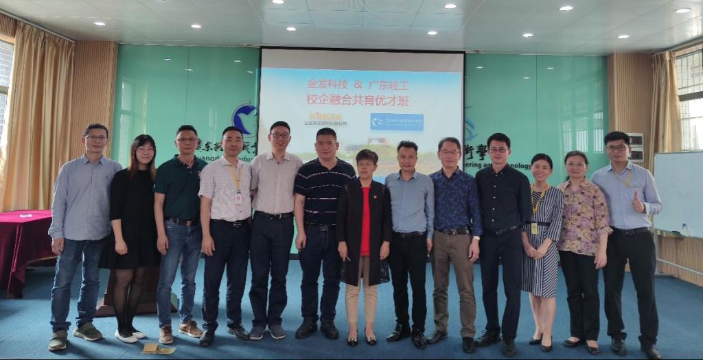 2021年3月19日下午,我校深度合作企业金发科技股份有限公司人力资源部长韦德广、工艺装备部长余兴兴、雇主品牌经理袁青川等一行6人到我校轻化工技术学院,在院长李荣、副院长陈金伟与高分子专业教研室主任刘青山、专业带头人陈大华等的见证下,向学院高分子专业二年级三个班的同学进行了广东轻工职业技术学院与金发科技股份有限公司“校企融合共育优才班”的宣讲。
