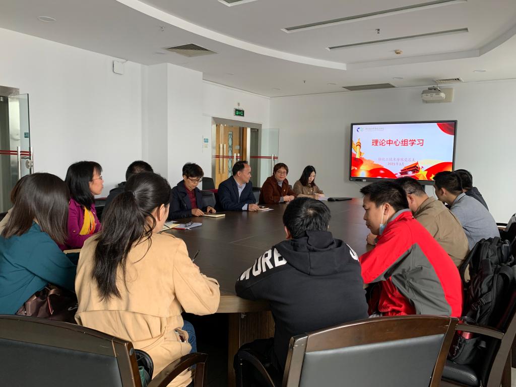 2021年3月2日下午,我院在广州校区第二工业实训楼906召开理论学习中心组(扩大)学习会,学校党委委员、副校长廖俊杰到会指导,我院党总支委员、领导班子、支部书记及各支部支委参加了学习。