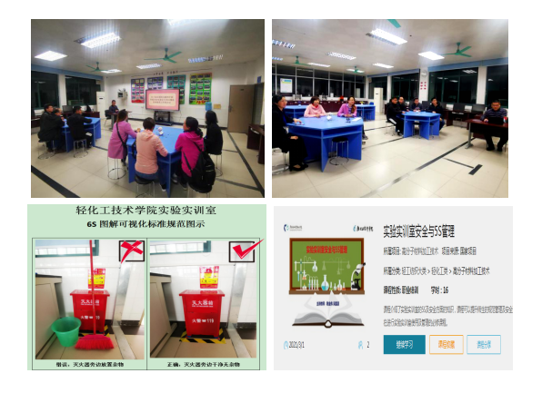 2021年3月3日晚,我院陈金伟副院长组织学院全体实验员在第四实训楼D505室召开了实验实训室安全及规范管理2020-2021-2新学期工作会议。会议就如何利用互联网手段开展实验实训安全及6S规范管理教育及6S图解可视化标准规范上墙工作进行了主题学习研讨及工作安排。会上陈金伟副院长指出了学院实验室在安全及规范管理方面存在的问题,提出了整改优化方案,并对2020-2021-2学期工作要点及计划进行了安排,包括各实验室要分阶段制作“6S图解可视化标准规范”上墙、利用职教云平台对学生进行安全教育及出题考试等工作进行了部署。最后学院全体实验员老师均表示新学期将齐心协力、努力工作,共同开创学院实验实训安全与规范管理工作新局面。(轻化工技术学院实训中心 通讯员林嘉定供稿)