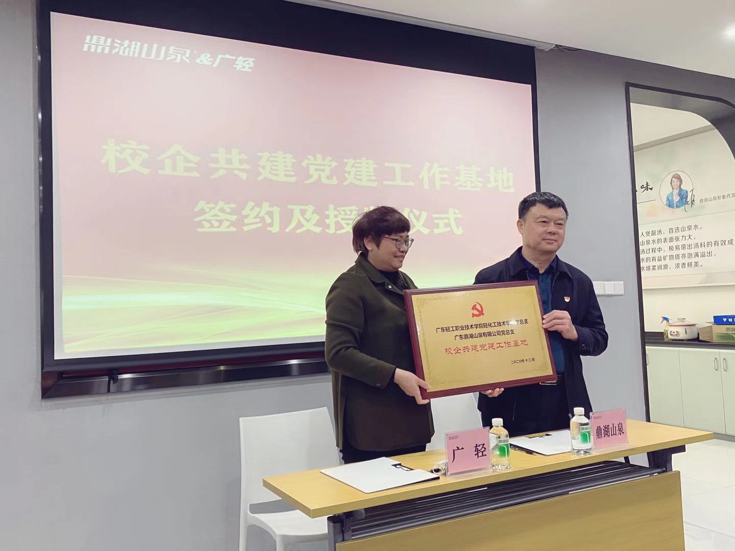 12月24日下午,轻化工技术学院与鼎湖山泉有限公司党建共建和大学生实践教学基地协议签订仪式在鼎湖山泉有限公司举行,校党委副书记梁艳珍、鼎湖山泉有限公司董事长吴木生出席仪式并致辞,学院党政班子成员及教研室主任代表参加仪式。