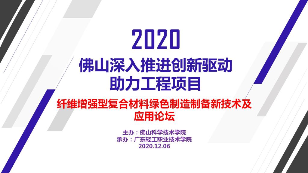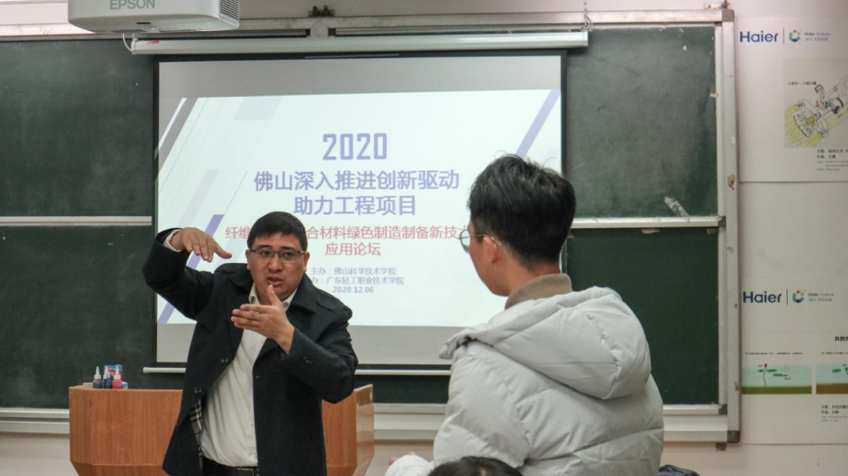 2020年12月6日上午由佛山科学技术学院2020年佛山深入推进创新驱动助力工程项目团队发起、广东省机械工程学会理事单位广东轻工职业技术学院承办的纤维增强型复合材料绿色制造制备新技术应用论坛在广东轻工职业技术学院南海北校区海尔企业文化课室隆重召开,来自院校、企业近30名代表参加了此次论坛。论坛邀请了广州金发碳纤维新材料发展有限公司原总经理、现广东轻工职业技术学院陈大华高工(教授级)及佛山科学技术学院李伟博士担任主讲嘉宾,广东省机械工程学会理事、广东轻工职业技术学院轻化工技术学院陈金伟副院长担任该次论坛主持人。论坛上陈大华教授介绍了纤维增强热塑性复合材料及其先进成型方法,李伟博士则介绍了长玻纤增强聚丙烯复合材料注塑成型关键技术研究的最新进展。