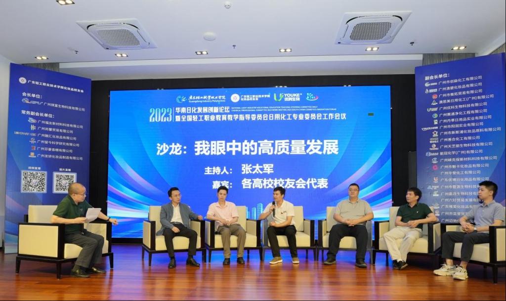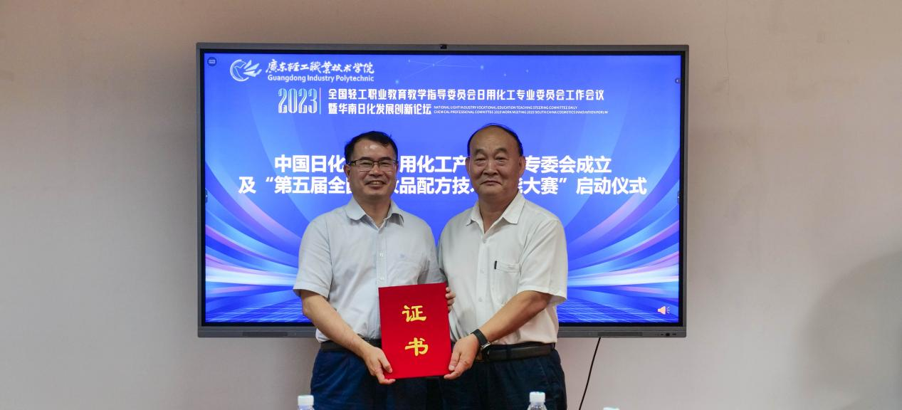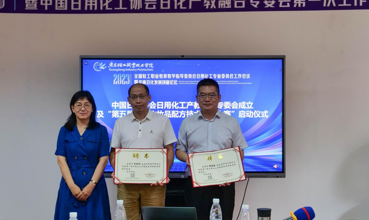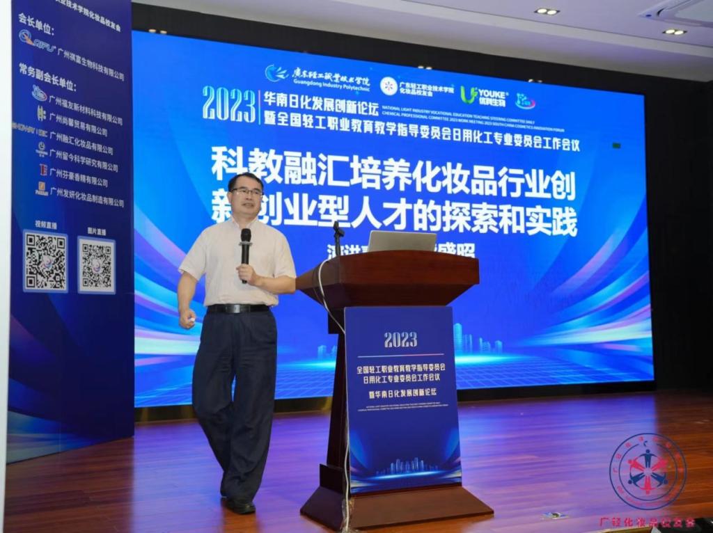 为持续加强日用化工相关职业院校、行业企业之间的交流互动,深化校企合作,促进产教深度融合,充分发挥日化领域专家组织作用,依托行业协会平台,构建产教融合共同体,促进校企产教融合,开展行业职业技能培训、职业技能大赛等活动,为日化行业培养技术技能复合型人才,推进日用化工领域行业企业及相关职业院校的高质量发展,2023年9月15日—17日全国轻工职业教育教学指导委员会日用化工专业委员会暨华南化妆品创新论坛在我校成功召开,会议由广东轻工职业技术学院轻化工技术学院院长陈金伟研究员主持。