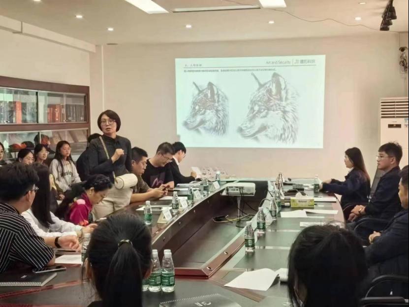 之后吴伟总经理带领团队,对工作室应届学生组织了面试,共10位同学参与了面试。在后续交流中获知,工作室学生在面试中展现出的光学版纹设计能力和严谨治学的工作素质获得了大师和企业在场人员的一致好评,而这些素质和技能正是学生们在大师工作室校企双导师依托真实项目开展人才培养的过程中所习得的。