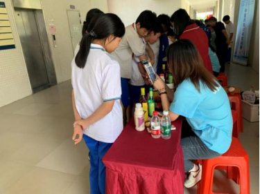 在华南师范大学附属中学增城校区,同学们在开幕式结束后,立即涌向活动现场。防伪科普团队成员也早早准备好了,热情接待前来参加活动的同学,为他们讲解中华牌铅笔、云南白药包装盒、旺仔QQ糖等包装上的各种防伪知识以及5元人民币上的一些防伪知识,耐心解释不同的防伪技术,指导他们如何通过防伪知识提高保护自己权益的能力。