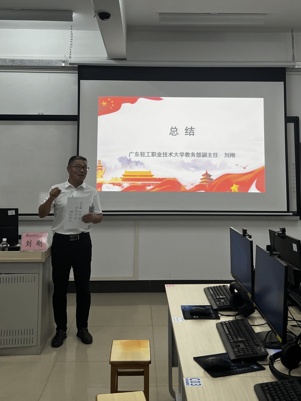 最后,教务部刘刚副主任作总结发言,他介绍了学校在课程思政建设方面的整体规划和具体实施情况,同时他提出如何以专业的态度和方式开展课程思政教学、如何以学术的态度和方式开展课程思政教学研究的问题,并分享学校在深化课程思政教育教学改革、持续提升人才培养质量等方面的基本思路。