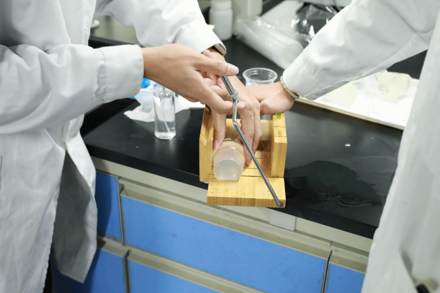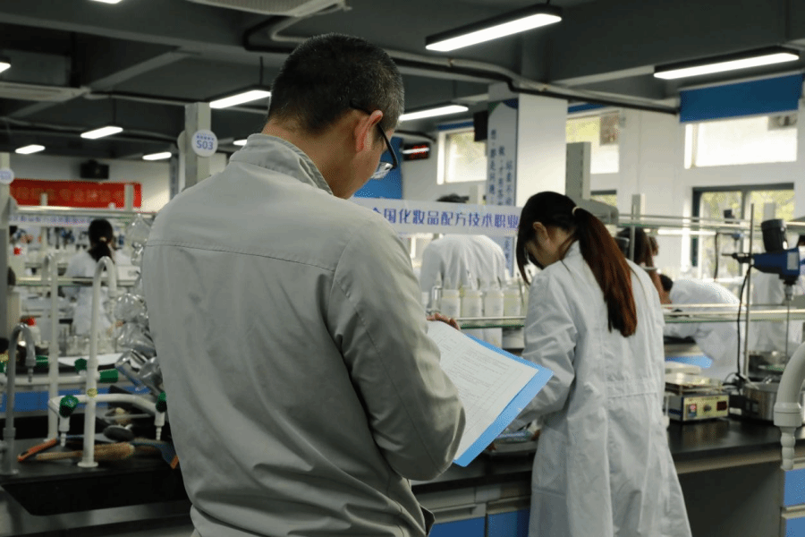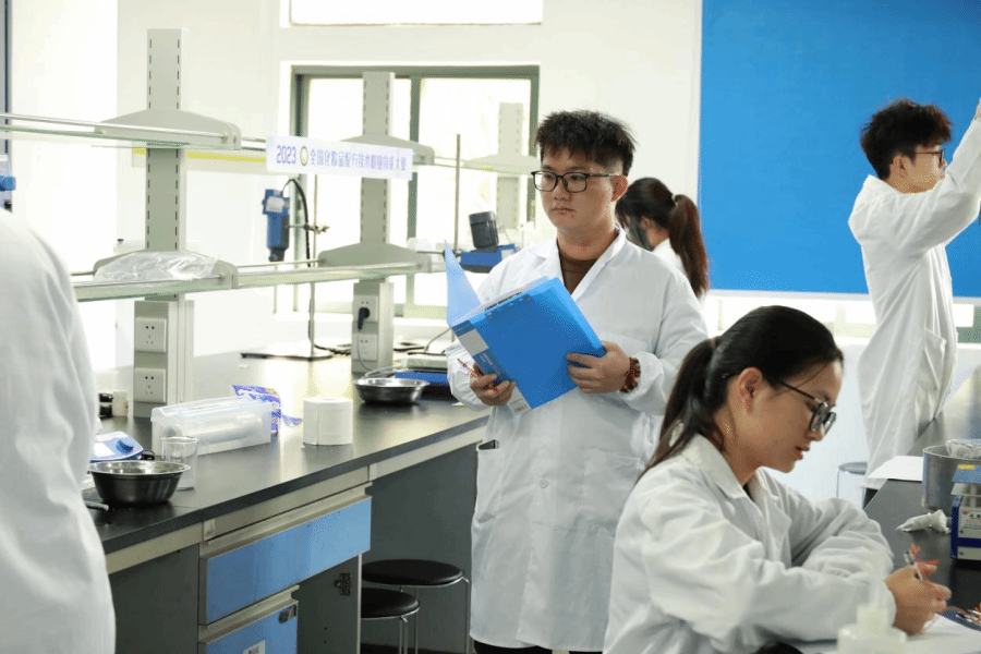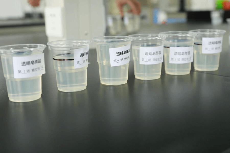 8:45分,考评员宣布考核开始,同学们认真检查仪器设备,确认无问题后,开始了脂肪酸透明皂的制备实操。沉着应对,规范操作,细心处理好每一处细节,制备出自己理想的透明皂。直至12:08分,第二场考核圆满结束,同学们纷纷交出了一份脂肪酸透明皂成品的答卷。总体来说,这次考核顺利进行,离不开各位老师、志愿者们的背后默默付出。(文/陈杰生 图/庄润相、李迪恩)