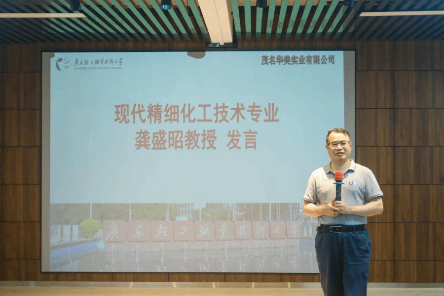 2025年6月21日,广东轻工职业技术大学材料学院2025年“华美”奖优励学金颁奖仪式在南海南区1号楼六楼多功能实训中心举行。广东轻工职业技术大学副校长李荣、材料学院党委副书记谢建周,材料学院现代精细化工技术专业带头人龚盛昭教授、现代精细化工技术专业教研室主任黄金辉、化妆品技术专业教研室主任黄笑,茂名华美实业有限公司总经理蔡金龙 、副总经理蔡若琳、运营总监蔡一帆,本届获奖学生代表以及观礼学生参加了颁奖仪式,仪式由材料学院徐熳瑶主持。