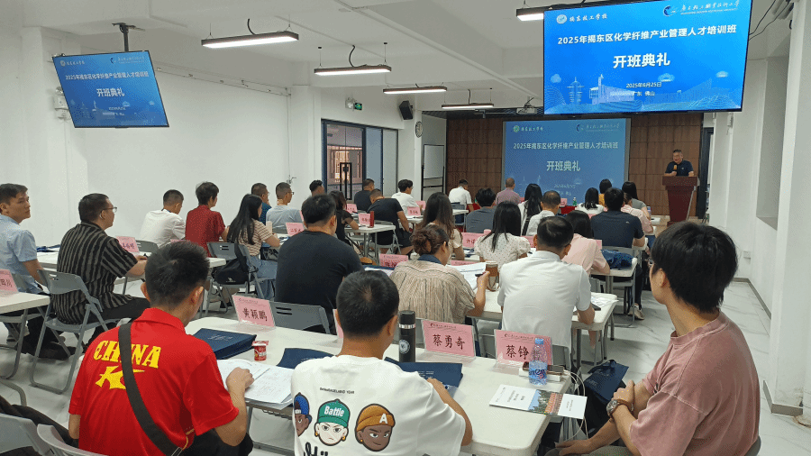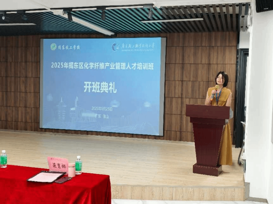 2025年6月25日上午,广东轻工职业技术大学南海校区南区1号楼6楼迎来了“2025年揭东区化学纤维产业管理人才培训班”的开班典礼。此次培训班旨在提升揭东区化学纤维产业管理人才的专业素养,推动产业升级与创新发展,为区域经济的高质量发展注入新动力。
