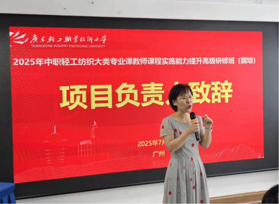 2025年7月6日,由广东轻工职业技术大学承办的国培项目“2025年中职轻工纺织大类专业课教师课程实施能力提升高级研修班”在广州君达华海宾馆顺利开班。材料学院主管培训副院长郭涛教授、项目负责人云娜教授,以及来自18所中职学校的40位骨干教师齐聚一堂,共同开启了这场专业成长之旅。