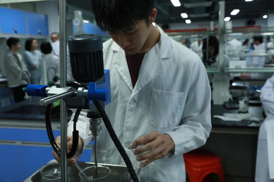 8:30分,考评员宣布考核开始,考场内,参考同学从容细致地检查校准仪器设备,随后全身心投入脂肪酸透明皂的制备实操。从原料配比、温度控制到反应监测,每一个步骤都规范严谨、有条不紊。大家专注细致处理每一处细节,凭借扎实的专业功底和熟练的操作技能,成功制得符合标准的脂肪酸透明皂成品。直至13:00分,第二场考核圆满结束,同学们顺利提交了实操答卷。整个考核过程组织有序、秩序井然,充分展现了参考学子扎实的专业素养与精湛的实操能力。此次考核的顺利完成,离不开各位指导老师的悉心指导、志愿者的贴心服务,也为后续协同育人工作的深化奠定了坚实基础。(文/陈杰生 图/杨子贤、谭金明)