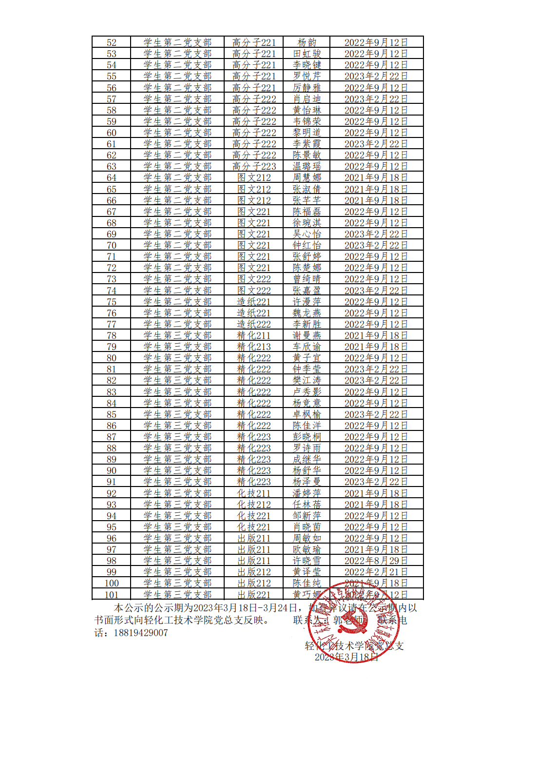 轻化工技术学院第17期拟确定为发展对象名单公示