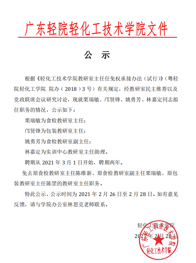 关于栗瑞敏、邝贤锋、姚勇芳、林嘉定四位同志拟任职务的公示