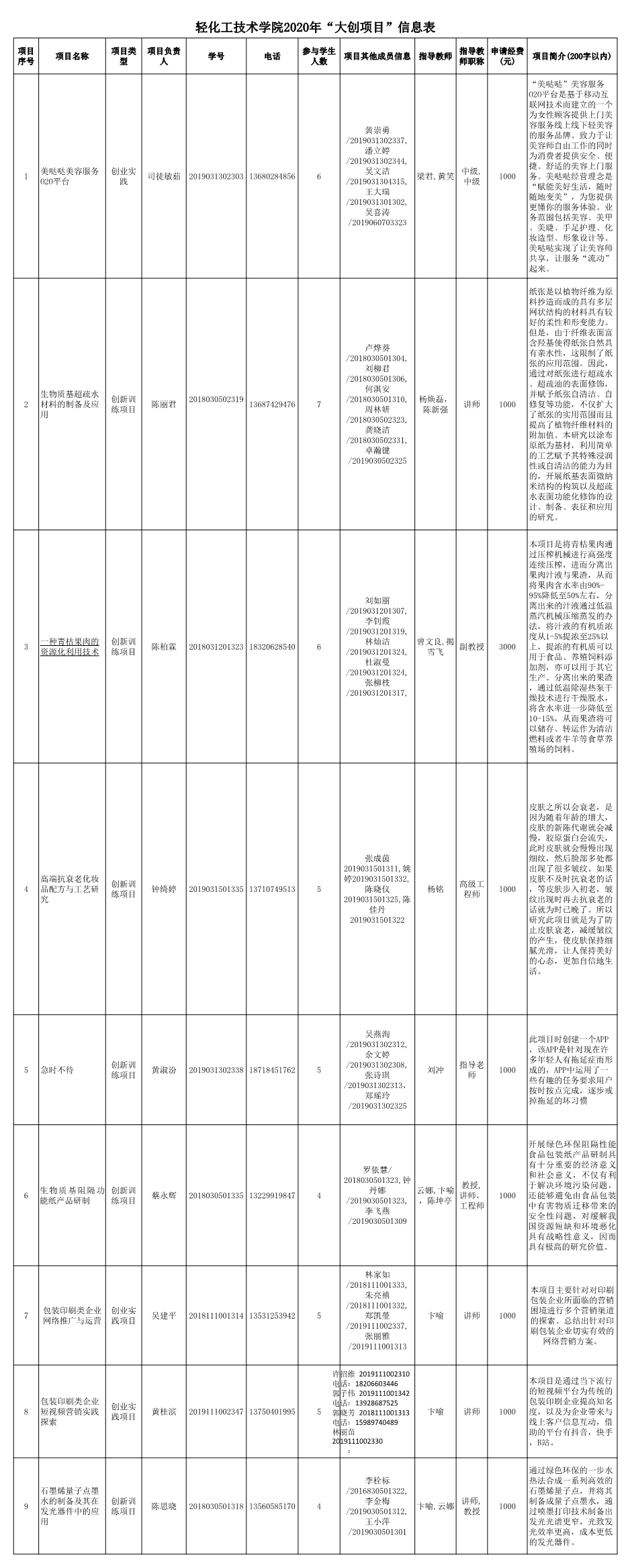 根据学院《关于组织申报2020年大学生创新创业训练计划项目的通知》要求,经个人申报,学院评审,《美哒哒美容服务O2O平台》等9个项目拟评定为2020年大学生创新训练项目,现予以公示。