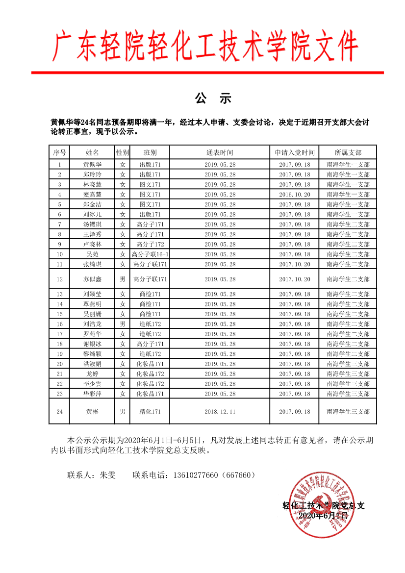 轻化工技术学院拟转正党员公示