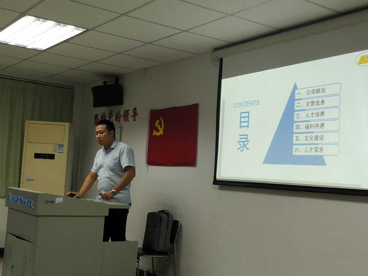 文经理全面介绍了东莞康源电子有限公司的概况、主要业务、企业精神、公司发展历程、人才需求、产品体系概貌、福利待遇、业余文化生活等。并对同学们较为关心的福利、未来发展等问题与同学们进行了互动交流。