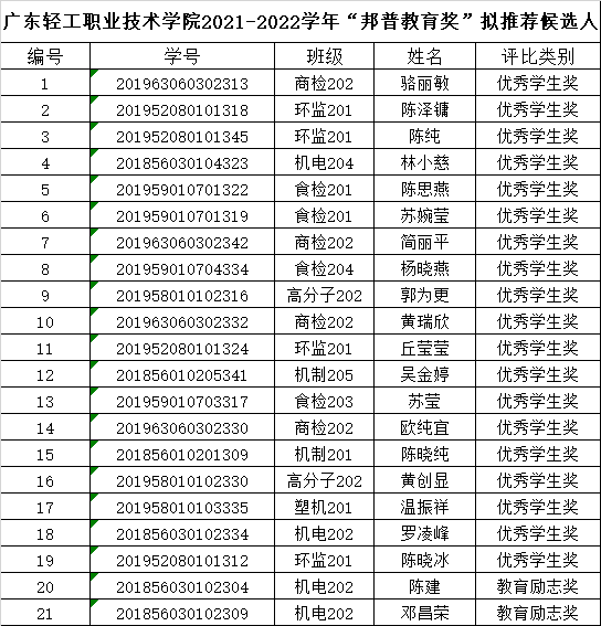 关于“邦普订单班”优秀学生奖、家庭经济困难教育励志奖公示的事宜通知