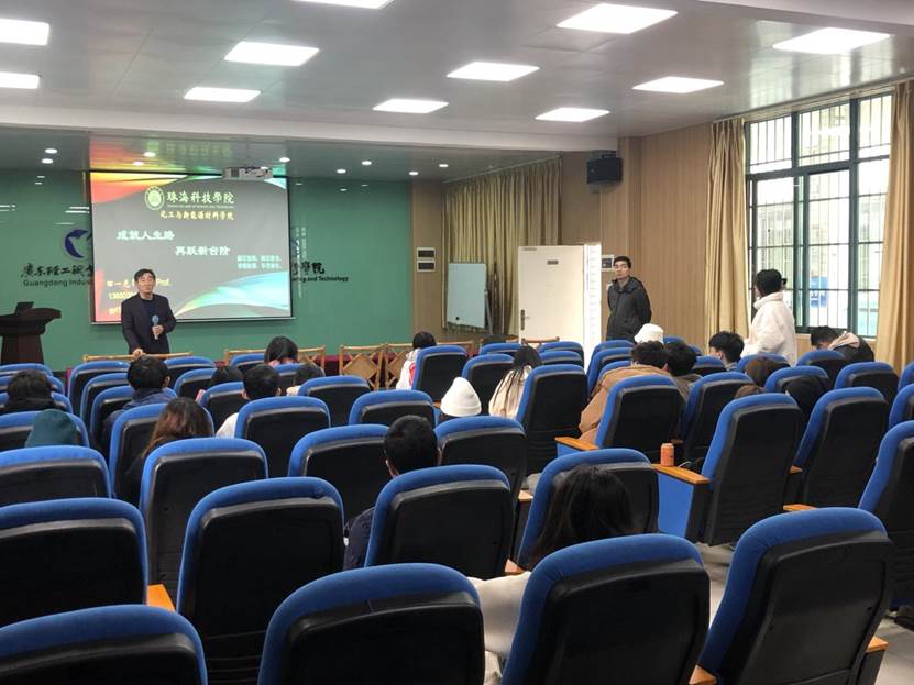 20211228日下午2:30分在南海校区第四实训楼A601室,珠海科技学院来我院进行了2022年普通专升本沟通交流会。为大三学生提供了宝贵的学习建议,并就普通专升本如何选择专业、如何备考等方向问题进行了解答。精细化工技术等相关专业30位同学参加了此次活动。