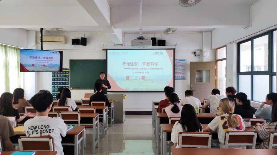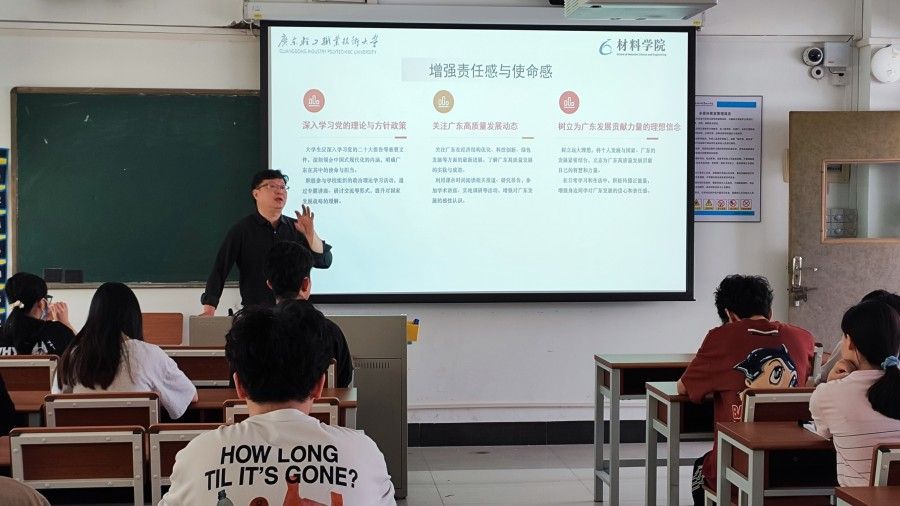 2025年3月27日,材料学院党委书记谢国伟为23级学生上主题为“粤地逐梦,青春有你——为投身中国式现代化的广东实践贡献青春力量”的春季思政第一课。