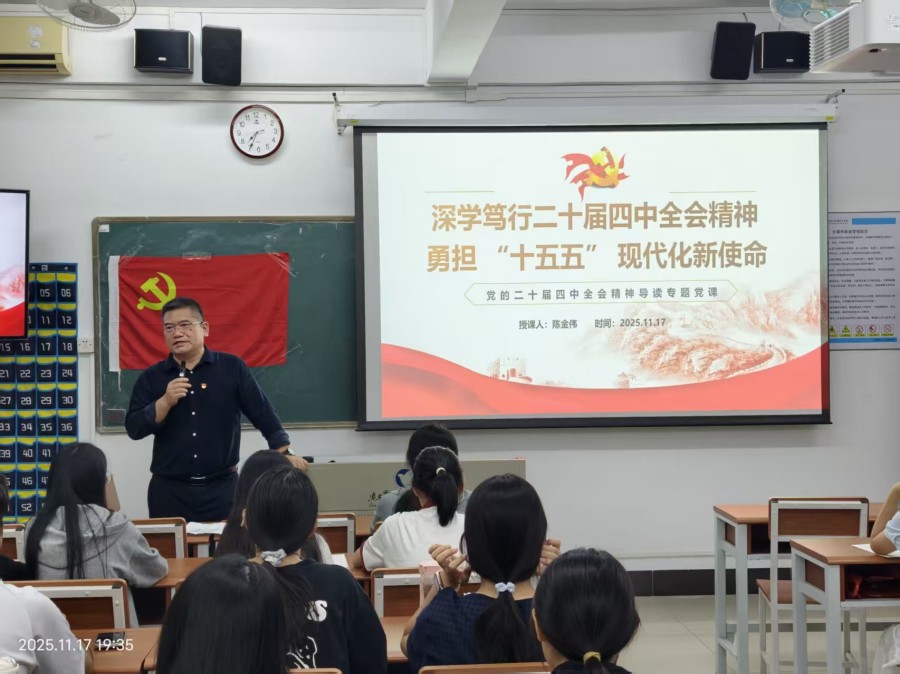 11月17日晚,陈金伟院长为第44期入党积极分子讲解党的二十届四中全会专题党课。