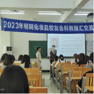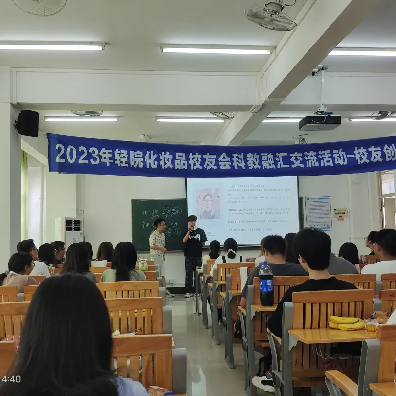 2023年5月20日轻化工技术学院举办了2023年轻院化妆品校友会科教融汇交流活动我院党委书记谢彩英精化专业朱永闯老师、陈杰生老师及十几位化妆品行业优秀校友出席了活动近百位21、22级在校学生参加了此次活动