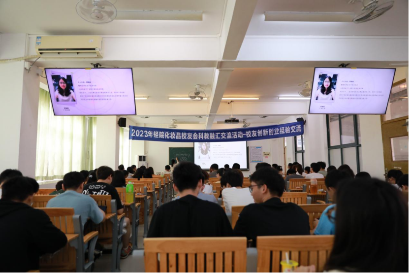 本次活动,以轻研日化技术协会为媒介,轻院化妆品校友会秘书处邀请了我院化妆品行业优秀校友一同返校,向师弟师妹们分享自己的创新创业经验和职业规划,促进了校友与师弟师妹们的友谊。我院党委书记谢彩英为交流活动致辞,对校友们的到来表示热烈的欢迎,为在校学生点明了此次活动的意义。
