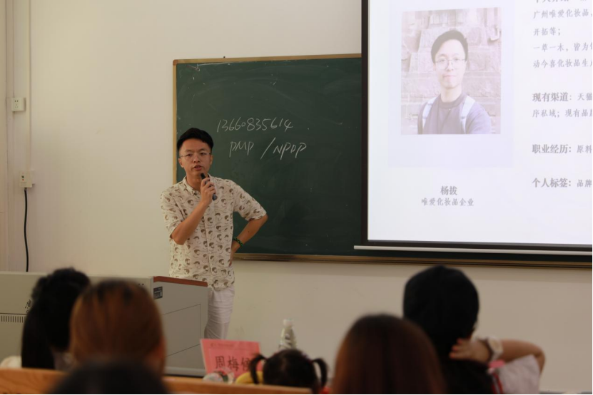 各位校友依次上台为大家分享自己多年来从事化妆品行业的经验,从行业优势到个人素养提升,从就业选择到职业规划......参与人员都十分专注,在分享结束后,大胆向师兄师姐们提问,活动氛围轻松有趣,虽然大多数人只是第一次见面,但彼此之间都感到十分亲切。